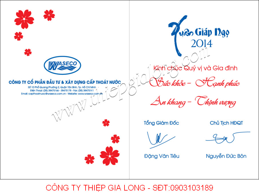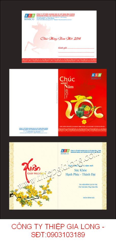 1/. Khách hàng mua mẫu thiệp chúc tết có sẵn của công ty gia long và đặt in logo thương hiệu và lời chúc lên trên thiệp :